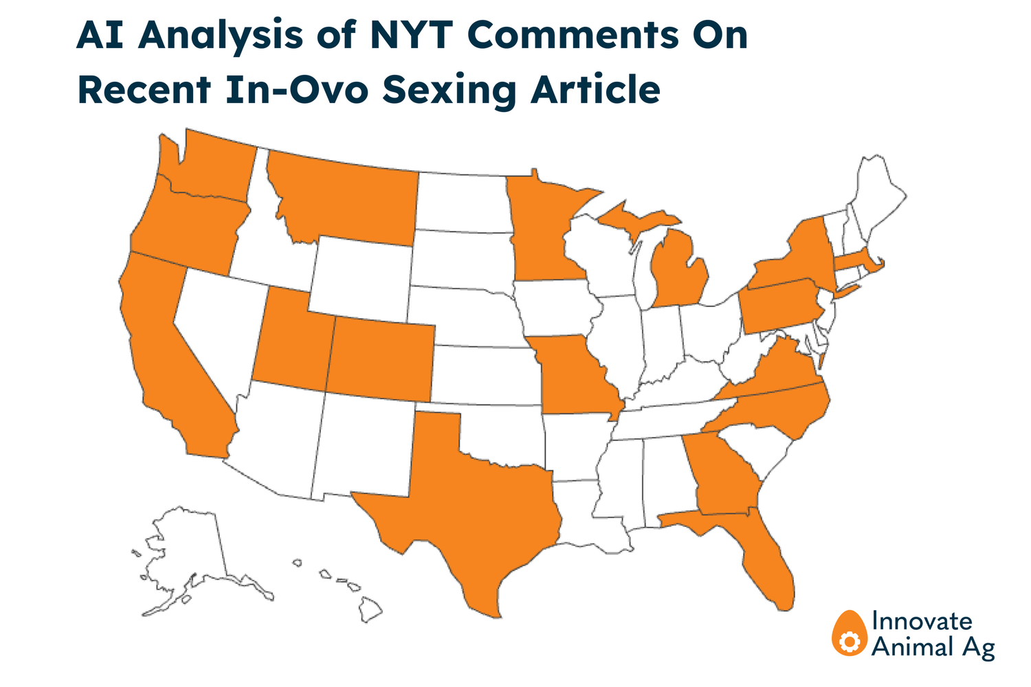 The New York Times recently published an opinion piece on in-ovo sexing which garnered comments from over 170 people. In-depth AI analysis of these comments painted a very optimistic and nuanced picture of how consumers will react to this technology, despite the sensationalized depiction of the topic of chick culling in the article. Additionally, comments from consumers motivated to find this new category of eggs on the shelves received 73% more positive engagement than the average comment on the article, suggesting that increased consumer awareness will lead to more high-intent shoppers.